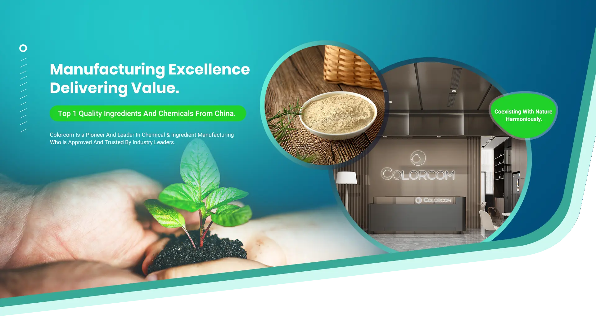 Хармонично коегзистирање со природата: една земја, едно семејство, една иднина. Сите производствени локации на Colorcom се наоѓаат во хемиски парк на државно ниво и сите наши фабрики се опремени со најсовремени капацитети, кои се сите меѓународно сертифицирани. Ова му овозможува на Colorcom континуирано да произведува производи за нашите глобални клиенти.